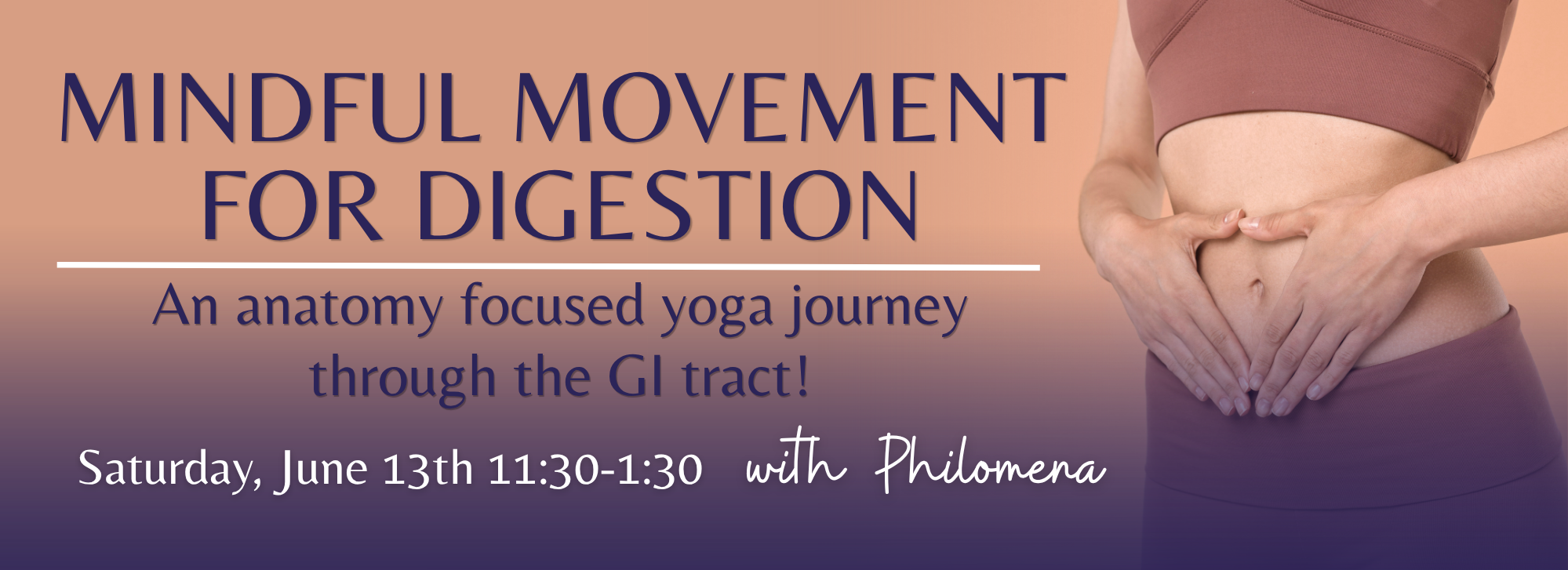 This interactive workshop explores the digestive tract from mouth to colon through anatomy, physiology, and the gut-brain connection. Participants will learn where and how carbohydrates, proteins, and lipids are digested. We will explore the importance of whole foods as sources of fiber and micronutrients that support digestive health and overall nourishment. You will learn how yoga and mindful eating can support a resting-and-digesting state!